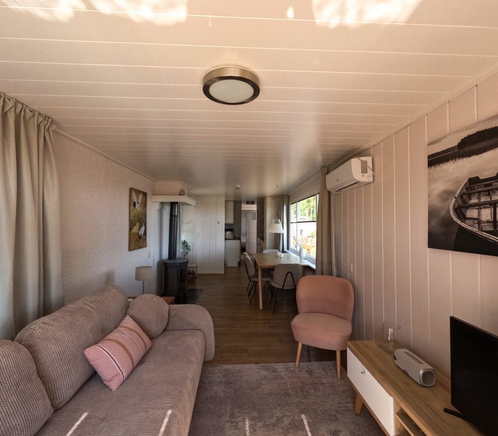 De idyllische woonboot heeft een fijne sfeer en is van alle gemakken voorzien.